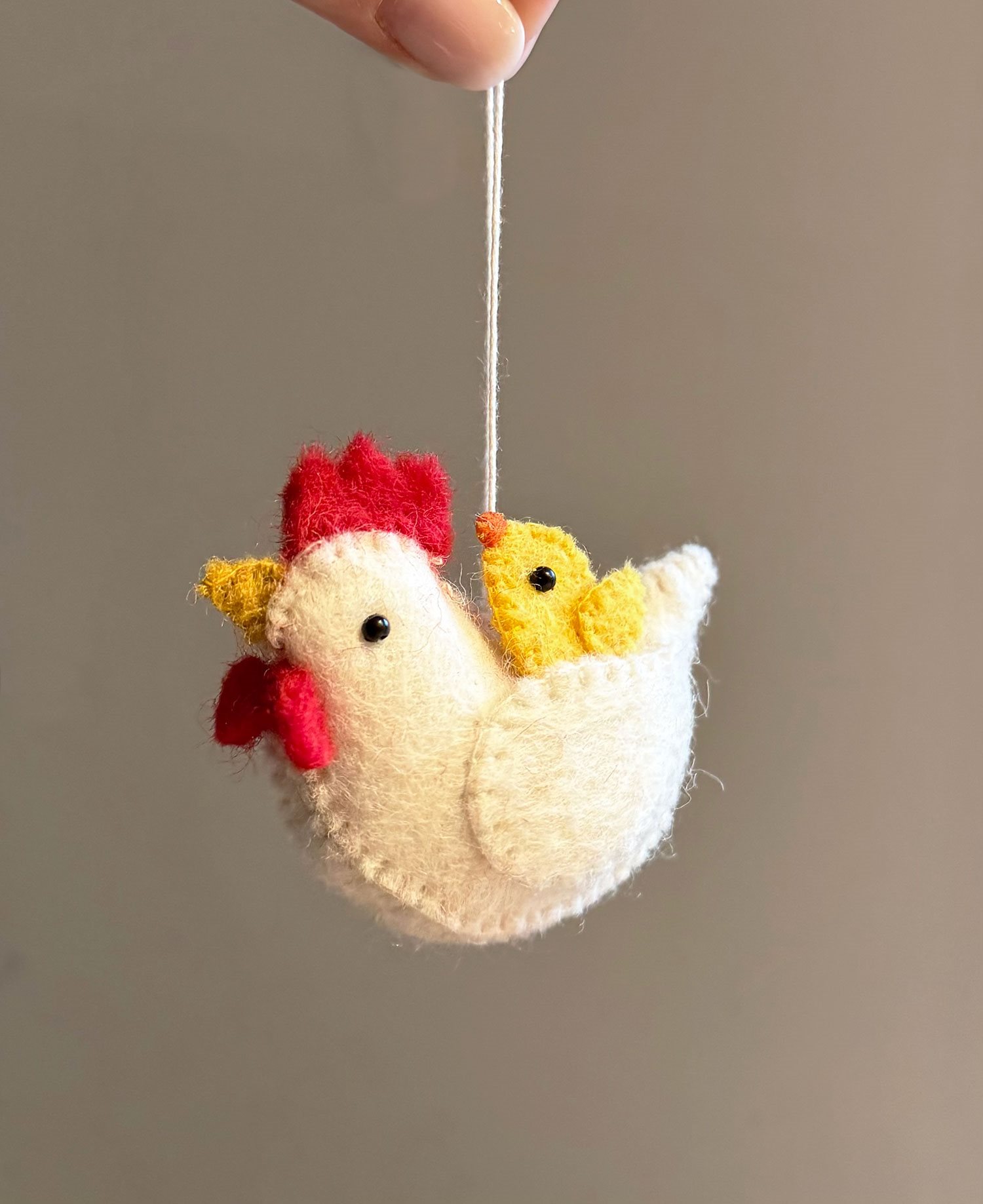 Ornament, White Hen w chicken